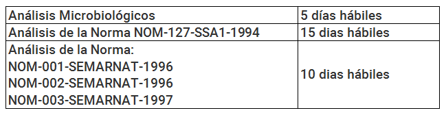 El tiempo de entrega de informes completos está en función de los servicios proporcionados; en el caso de estudios parciales se pueden proporcionar resultados desde las 48 horas de la recepción de la muestra en forma parcial, con un costo adicional.
